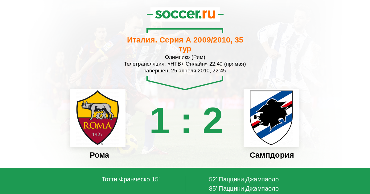 Рома - Сампдория: обзор матча 25 апреля 2010