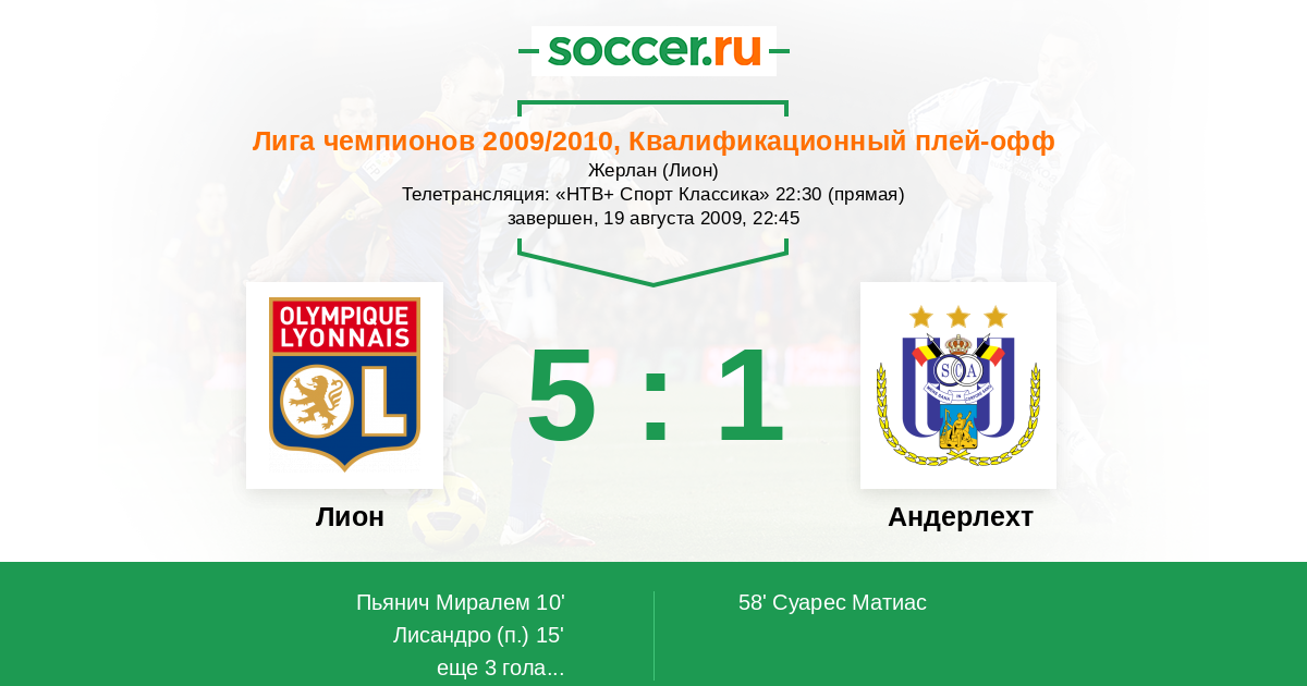 Лион - Андерлехт: обзор матча 19 августа 2009
