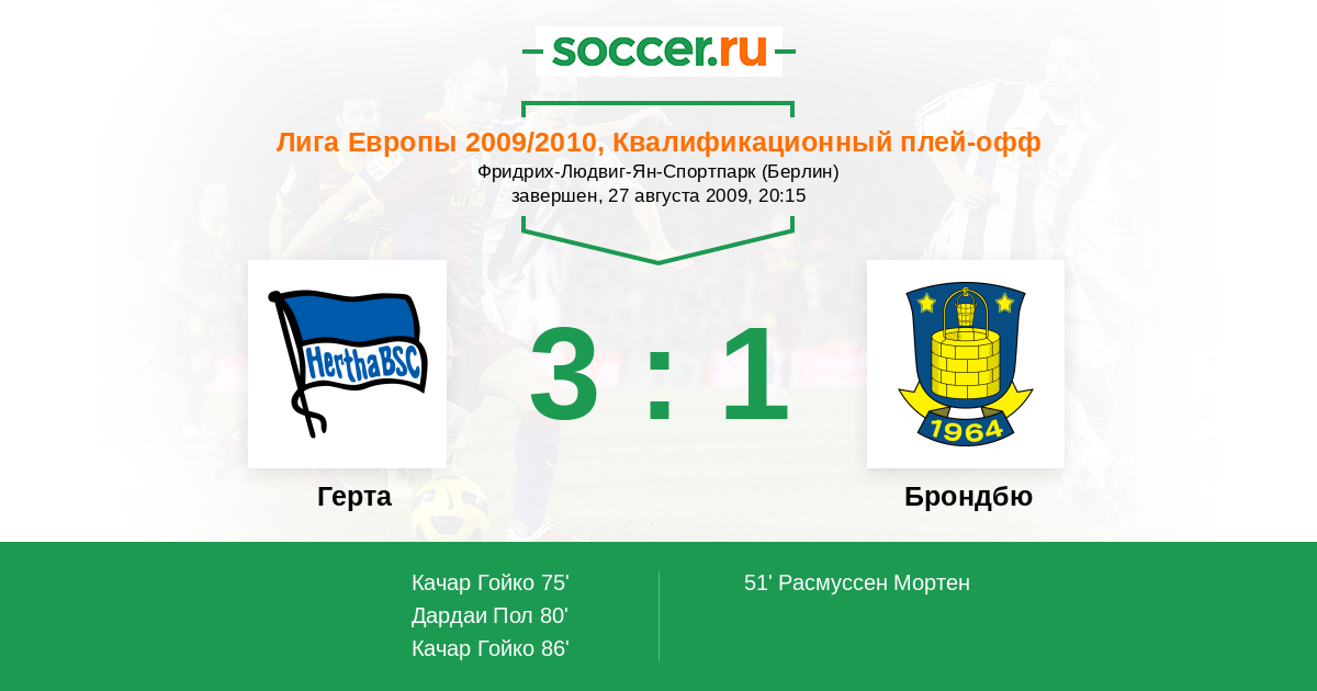 Герта - Брондбю: обзор матча 27 августа 2009