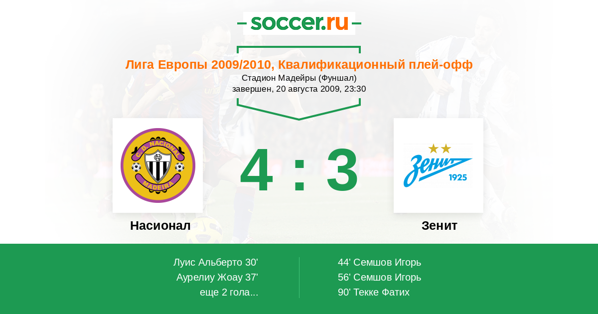 Насионал - Зенит: обзор матча 20 августа 2009