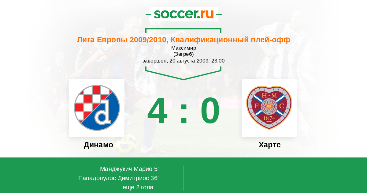 Динамо - Хартс: обзор матча 20 августа 2009