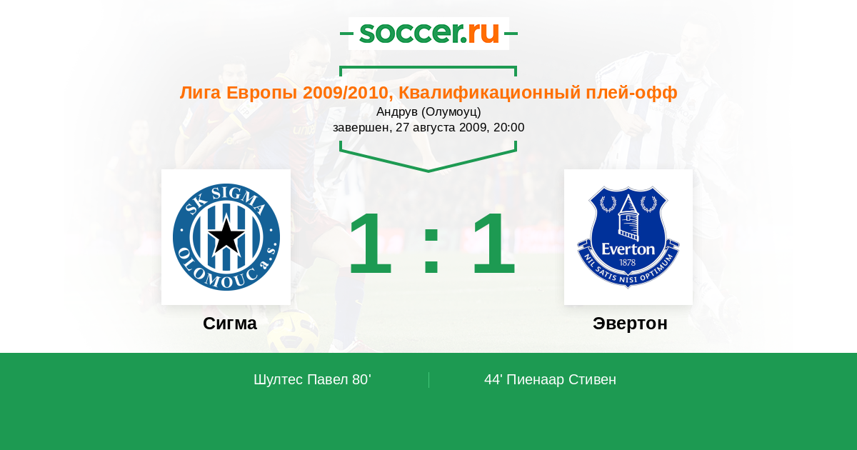 Сигма - Эвертон: обзор матча 27 августа 2009
