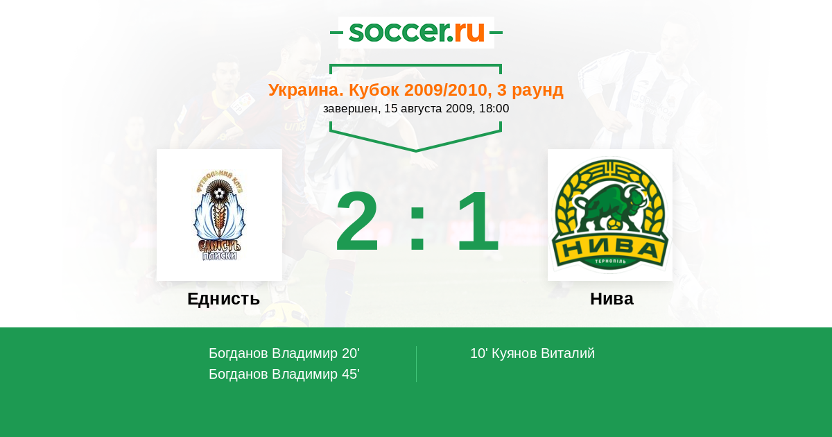 Еднисть - Нива: обзор матча 15 августа 2009