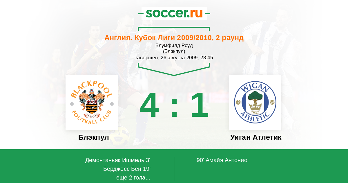 Блэкпул - Уиган Атлетик: обзор матча 26 августа 2009