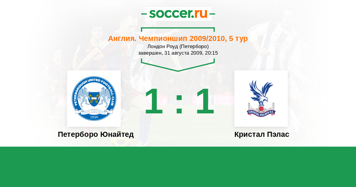 Петерборо Юнайтед - Кристал Пэлас: обзор матча 31 августа 2009