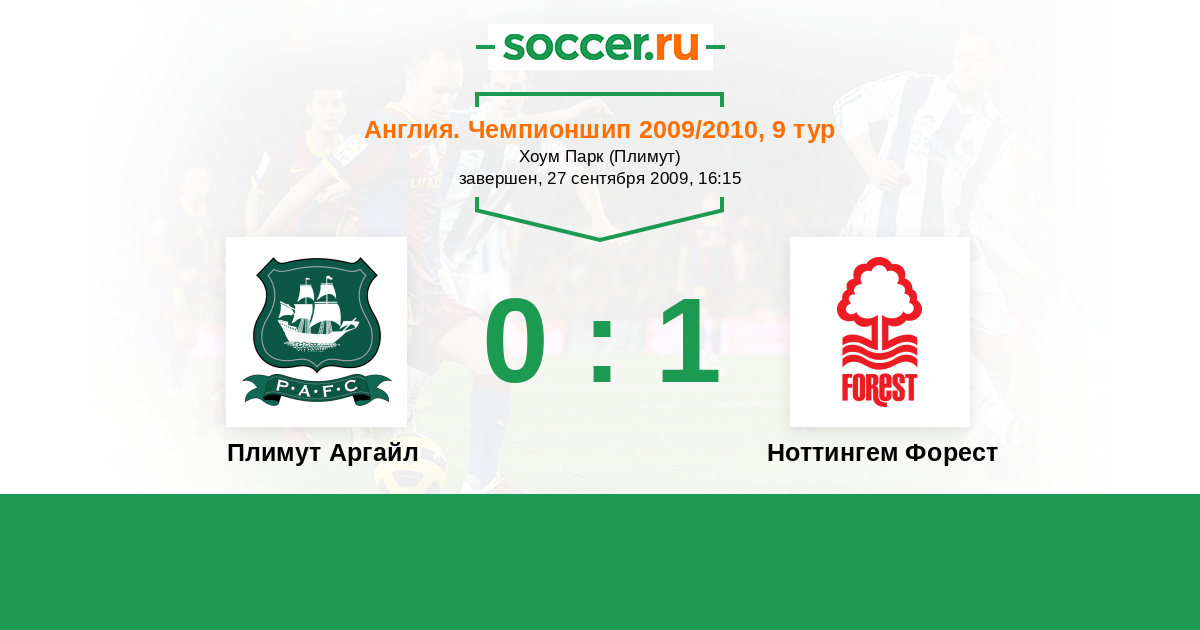 Плимут Аргайл - Ноттингем Форест: обзор матча 27 сентября 2009