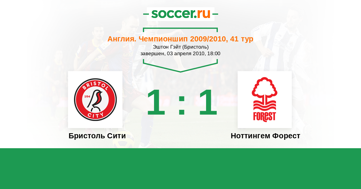 Бристоль Сити - Ноттингем Форест: обзор матча 3 апреля 2010