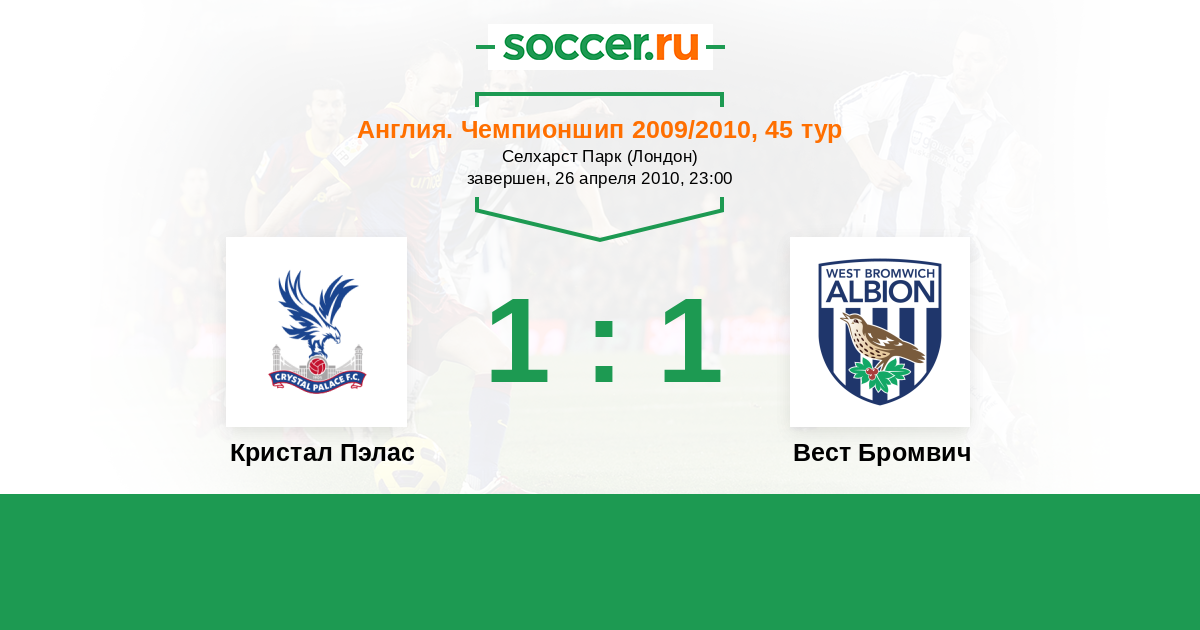 Кристал Пэлас - Вест Бромвич: обзор матча 26 апреля 2010