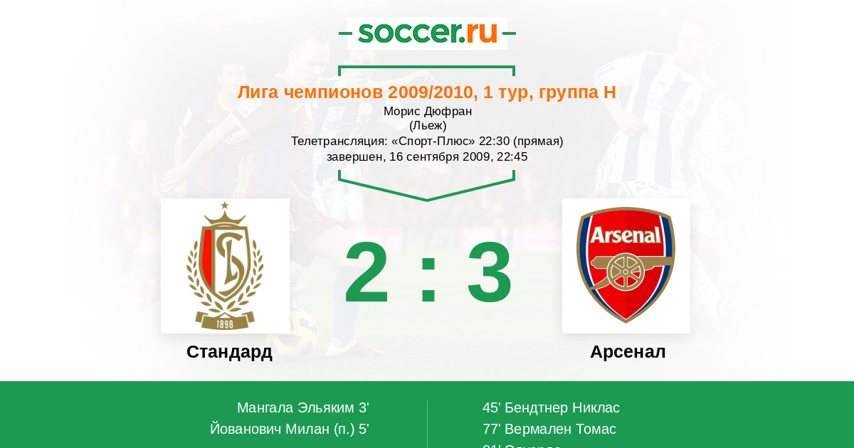 Стандард - Арсенал: обзор матча 16 сентября 2009