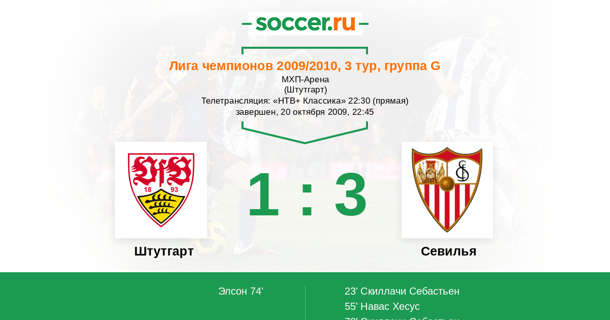 Штутгарт - Севилья: обзор матча 20 октября 2009
