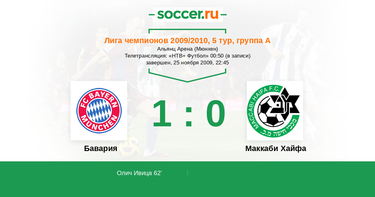Бавария - Маккаби Хайфа: обзор матча 25 ноября 2009