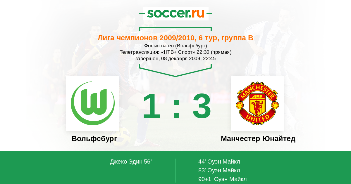 Вольфсбург - Манчестер Юнайтед: обзор матча 8 декабря 2009