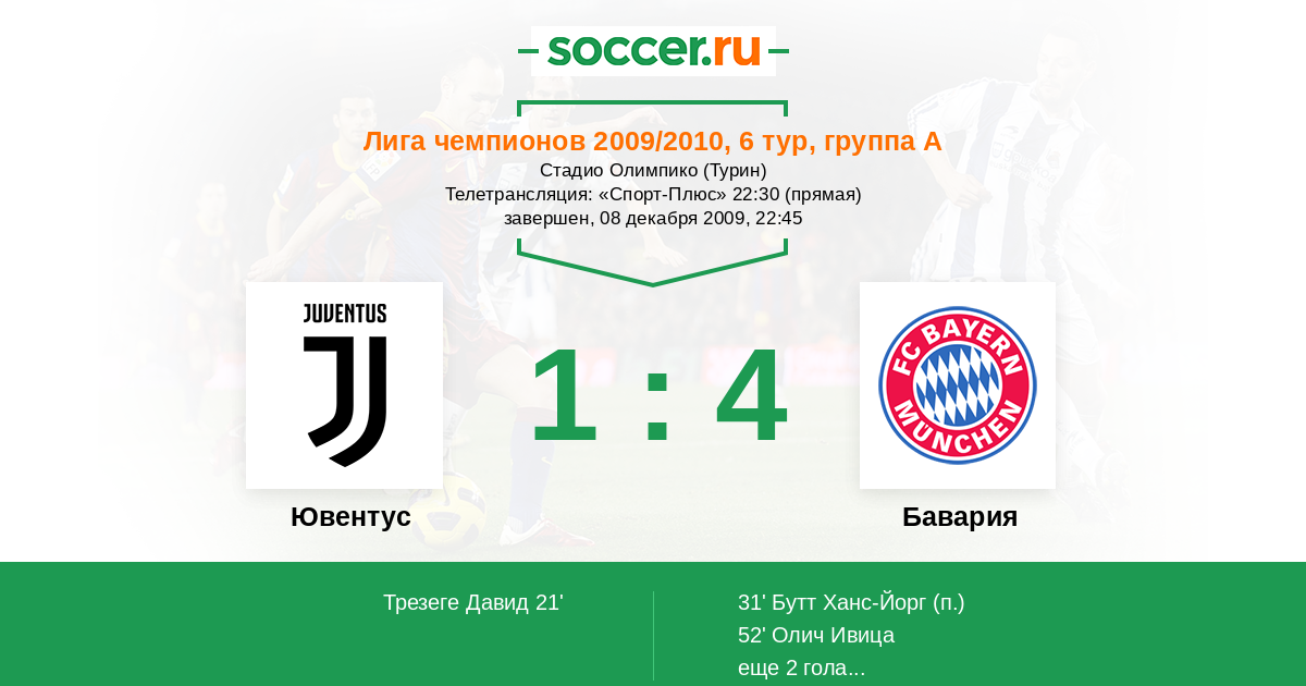 Ювентус - Бавария: обзор матча 8 декабря 2009