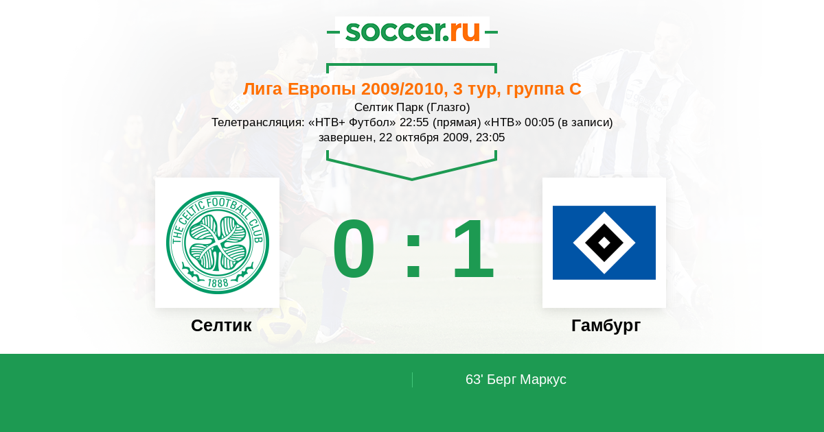 Селтик - Гамбург: обзор матча 22 октября 2009