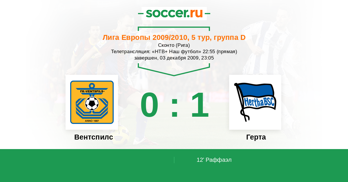 Вентспилс - Герта: обзор матча 3 декабря 2009
