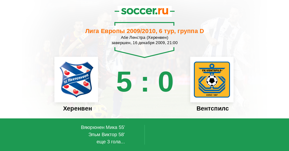 Херенвен - Вентспилс: обзор матча 16 декабря 2009