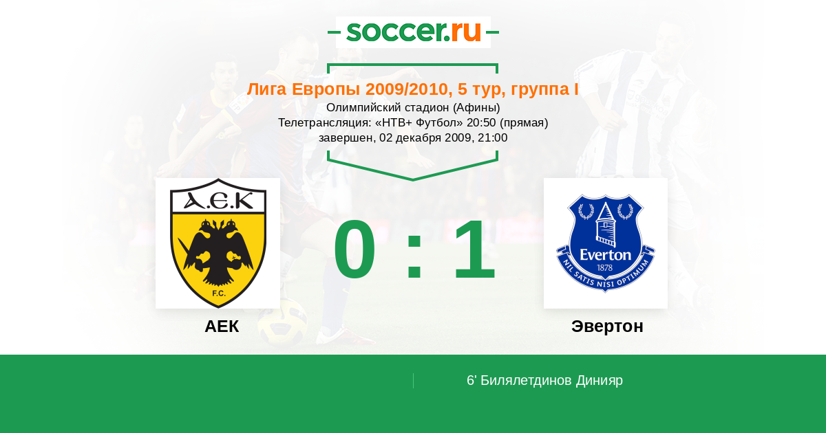 АЕК - Эвертон: обзор матча 2 декабря 2009