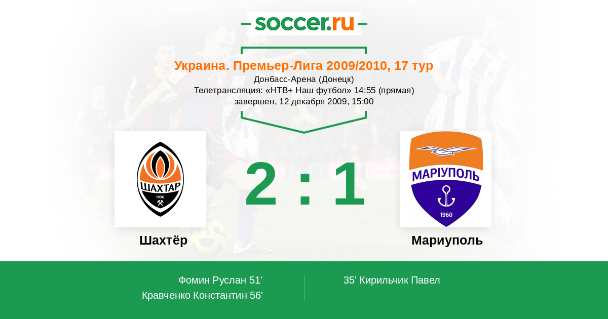 Шахтёр - Ильичевец: обзор матча 12 декабря 2009