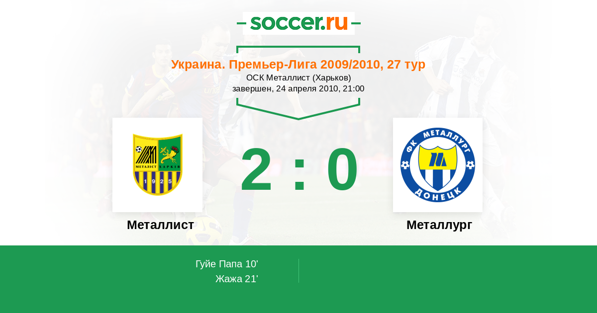Металлист - Металлург: обзор матча 24 апреля 2010