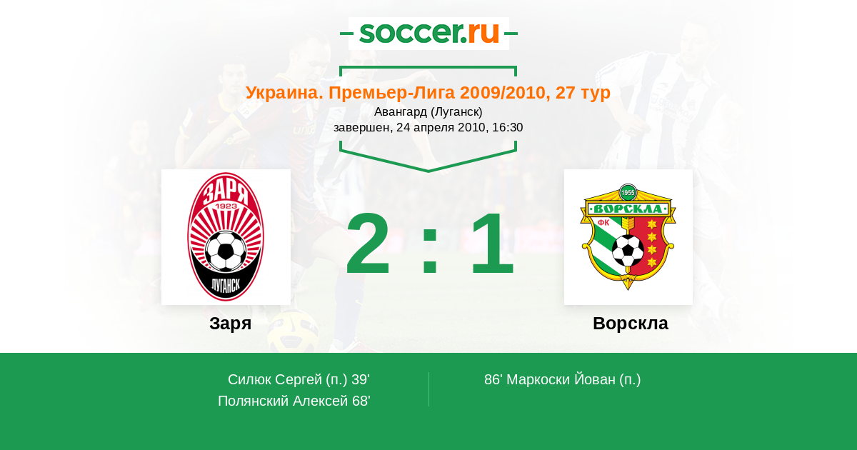 Заря - Ворскла: обзор матча 24 апреля 2010