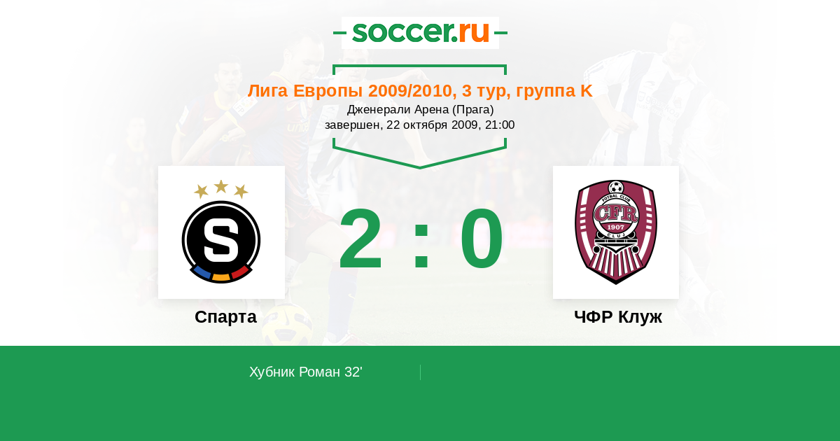Спарта - ЧФР Клуж: обзор матча 22 октября 2009