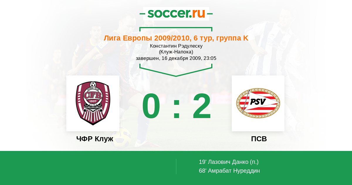 ЧФР Клуж - ПСВ: обзор матча 16 декабря 2009