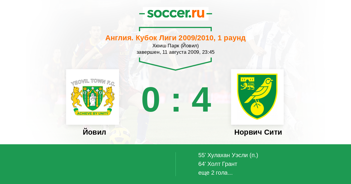 Йовил - Норвич Сити: обзор матча 11 августа 2009