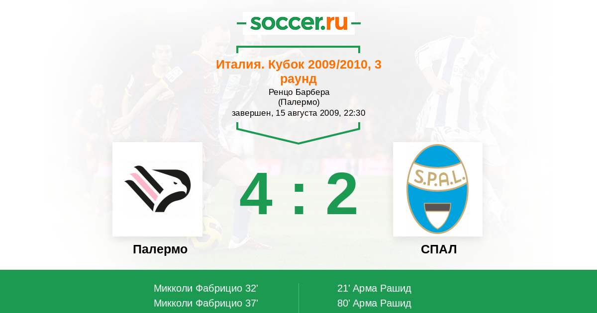 Палермо - СПАЛ: обзор матча 15 августа 2009