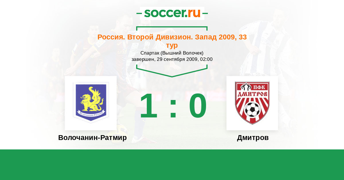 Волочанин-Ратмир - Дмитров: обзор матча 29 сентября 2009