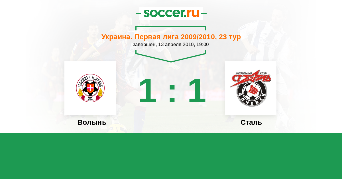 Волынь - Сталь: обзор матча 13 апреля 2010