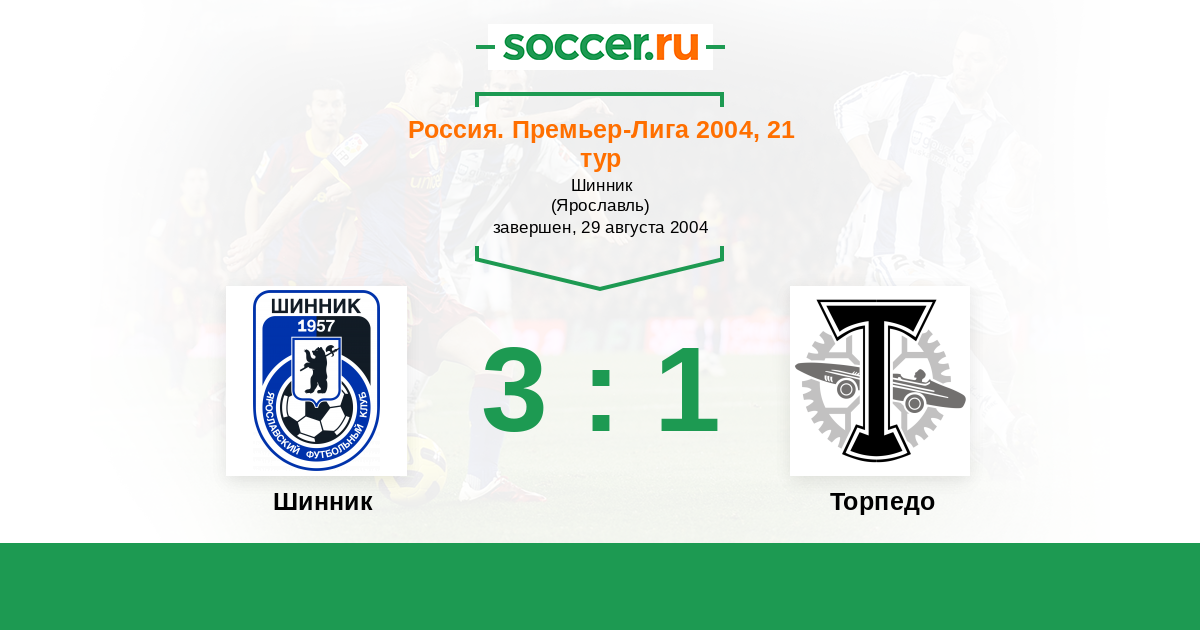 Шинник - Торпедо: обзор матча 29 августа 2004