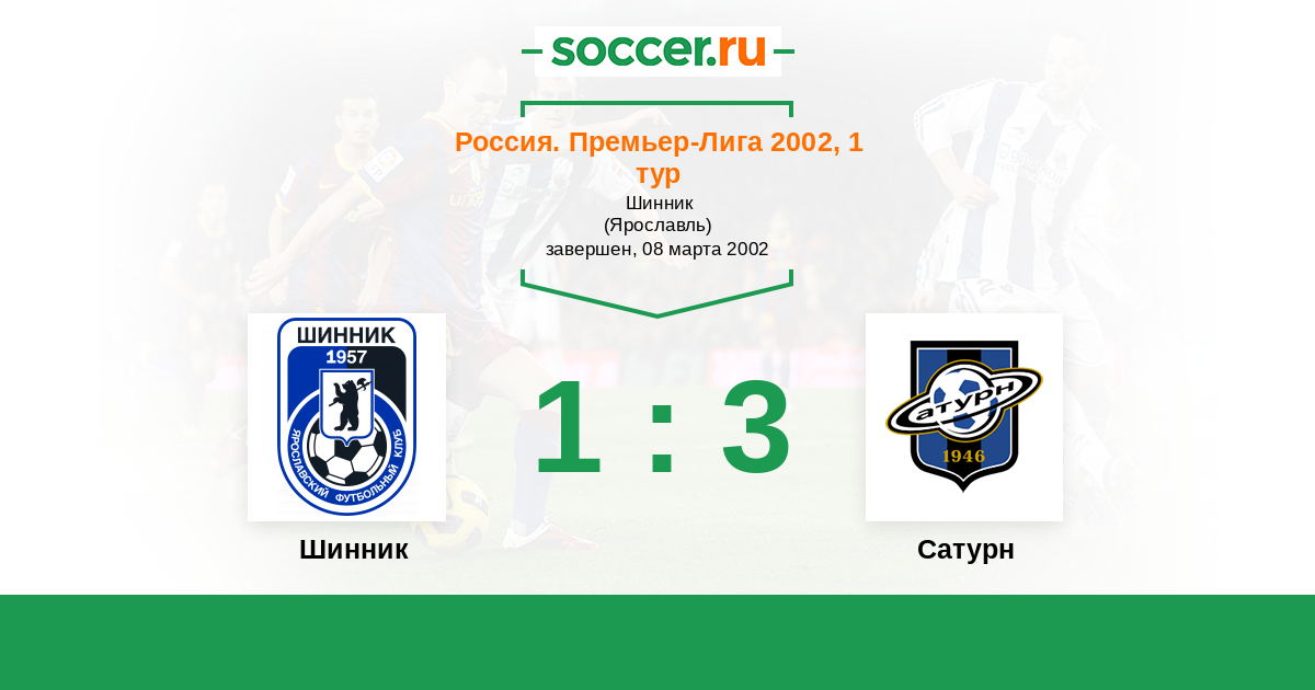 Шинник - Сатурн: обзор матча 8 марта 2002