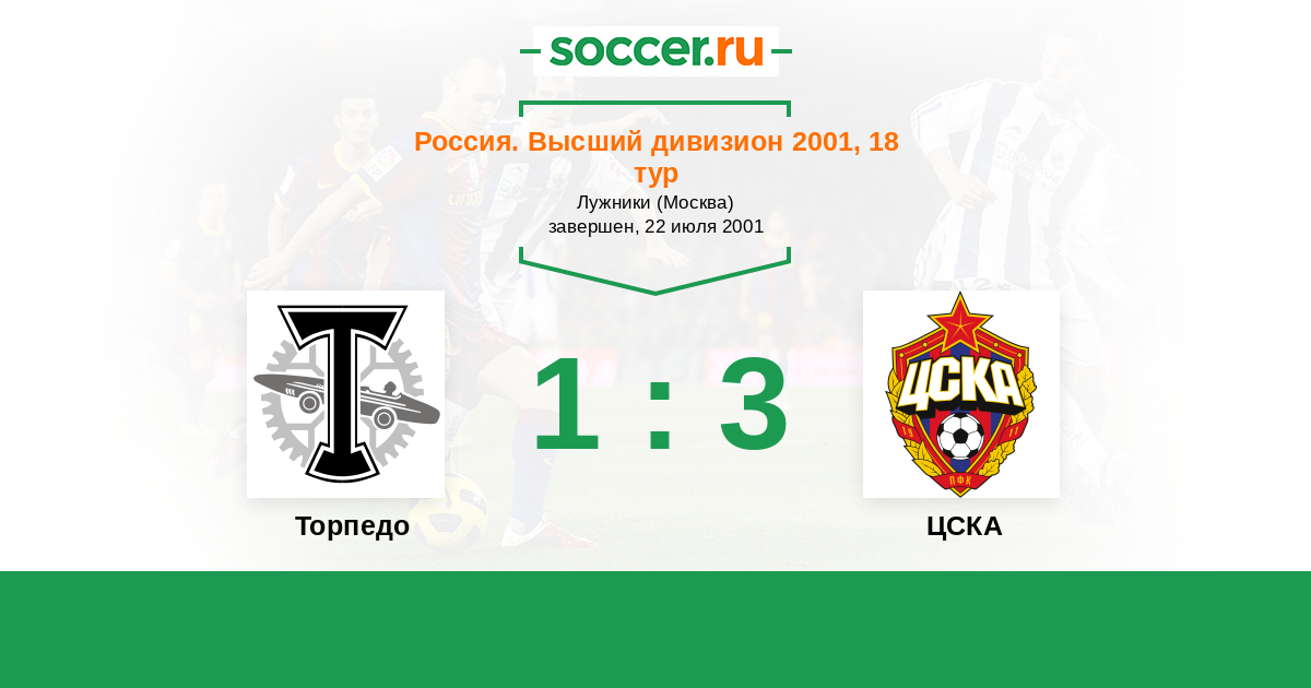 Торпедо - ЦСКА: обзор матча 22 июля 2001