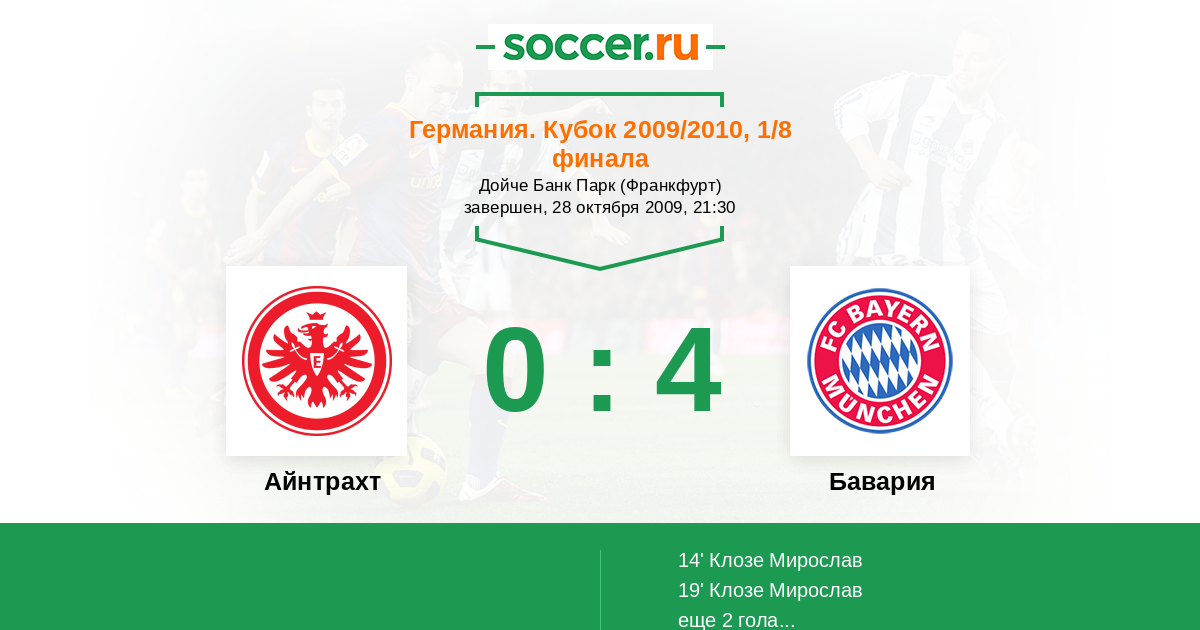Айнтрахт - Бавария: обзор матча 28 октября 2009