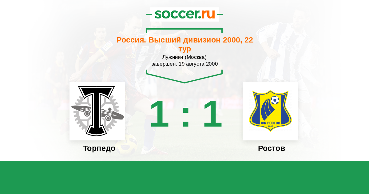 Торпедо - Ростсельмаш: обзор матча 19 августа 2000