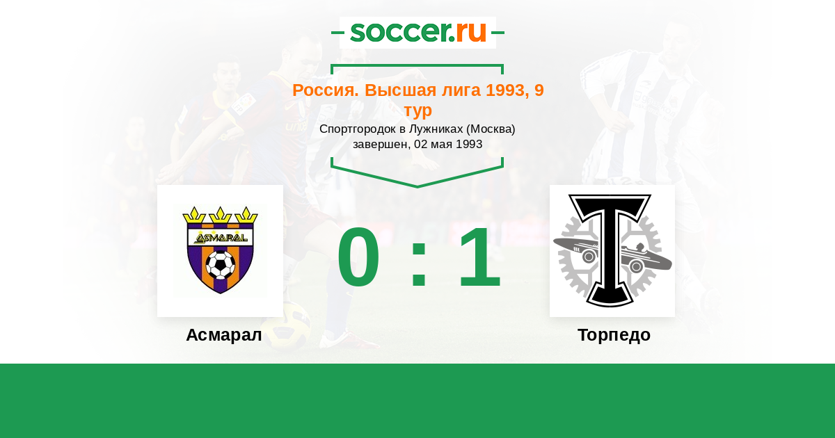 Асмарал - Торпедо: обзор матча 2 мая 1993