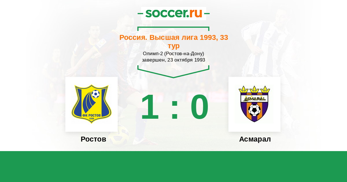 Ростсельмаш - Асмарал: обзор матча 23 октября 1993