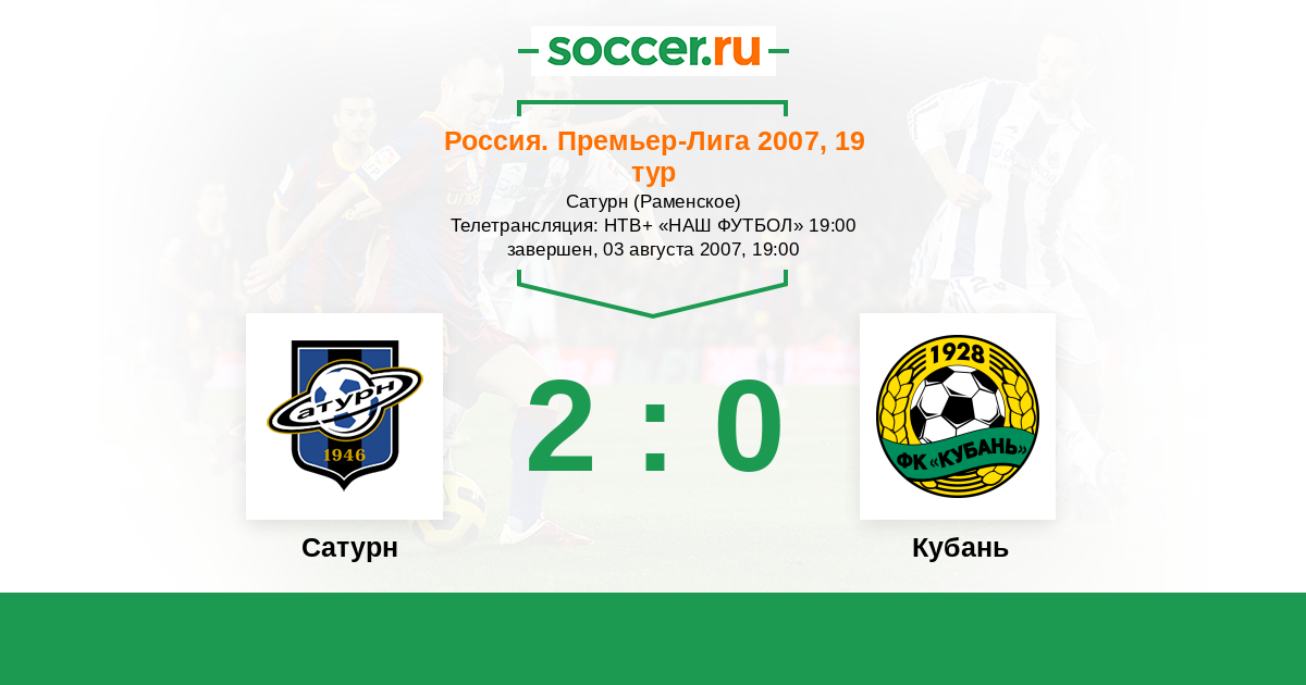 Сатурн - Кубань: обзор матча 3 августа 2007
