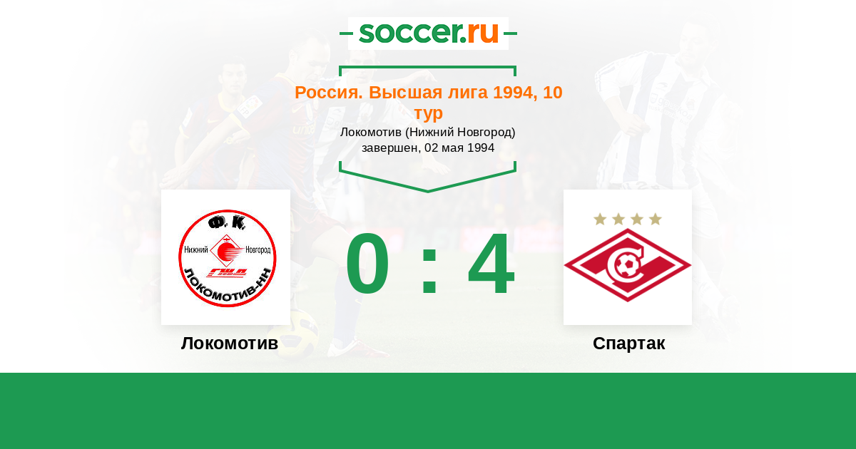 Локомотив - Спартак: обзор матча 2 мая 1994