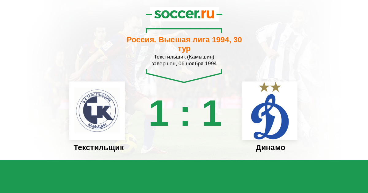 Текстильщик - Динамо: обзор матча 6 ноября 1994