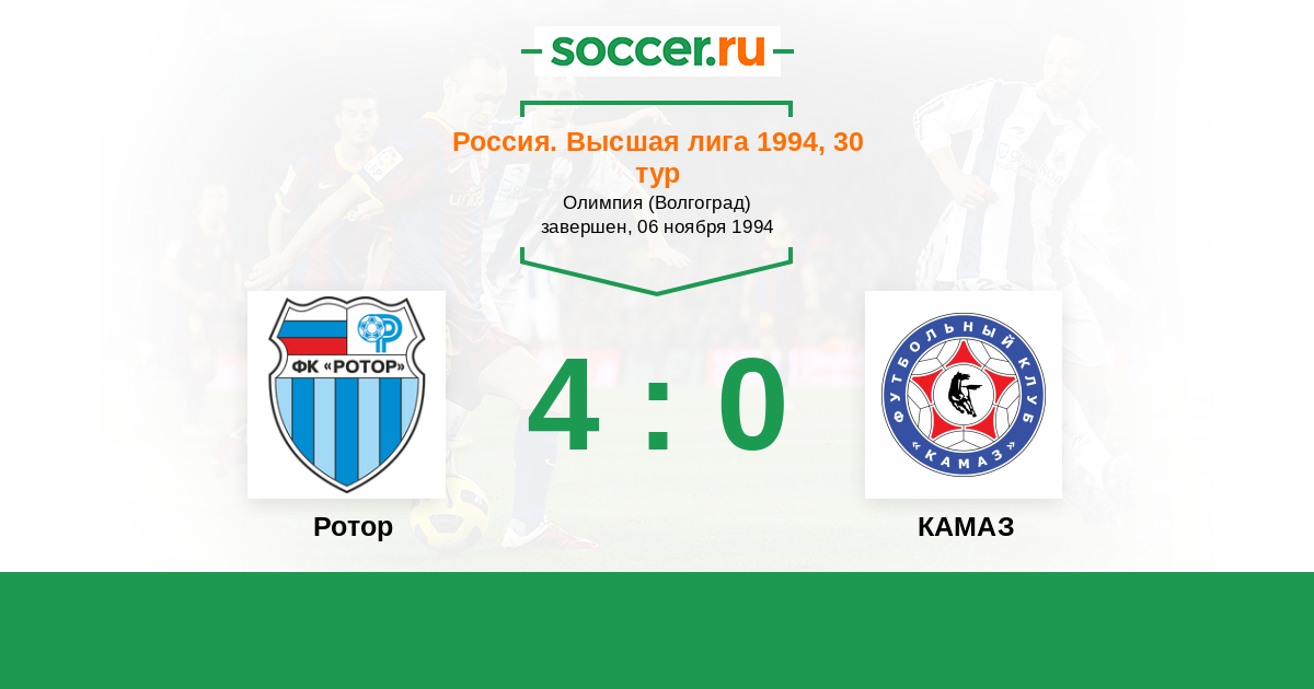 Ротор - КАМАЗ: обзор матча 6 ноября 1994