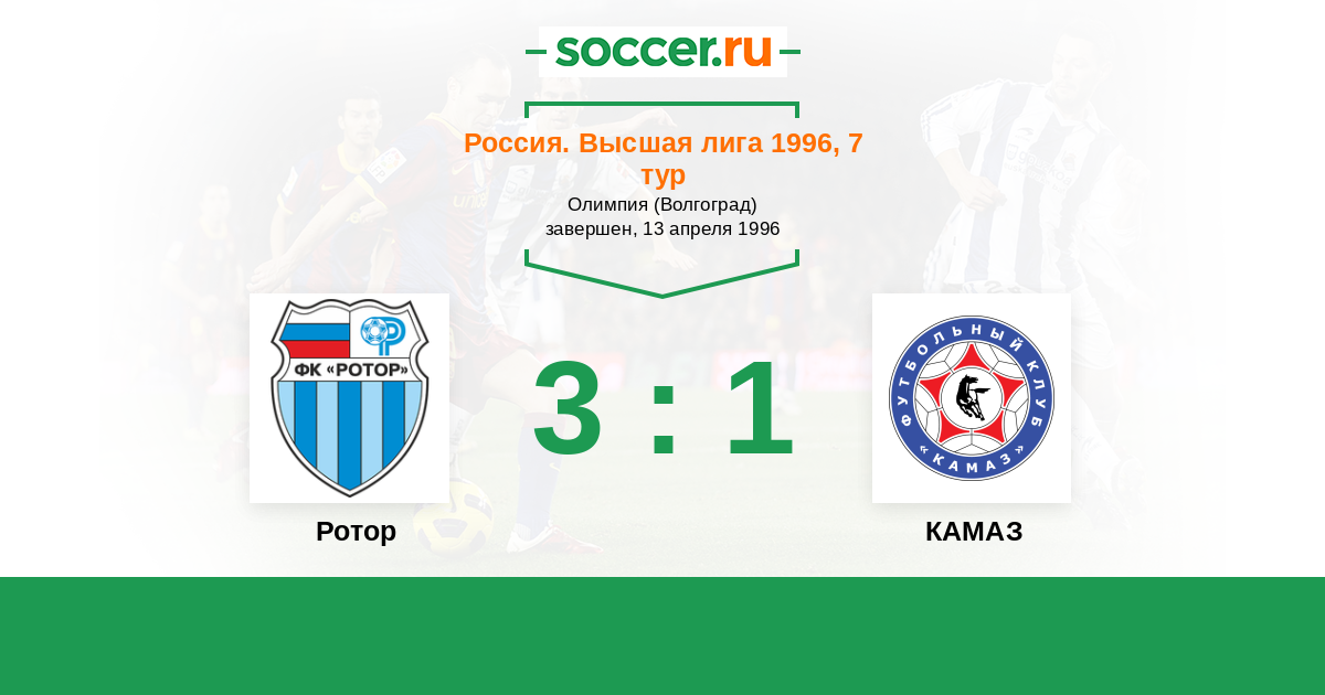 Ротор - КАМАЗ: обзор матча 13 апреля 1996