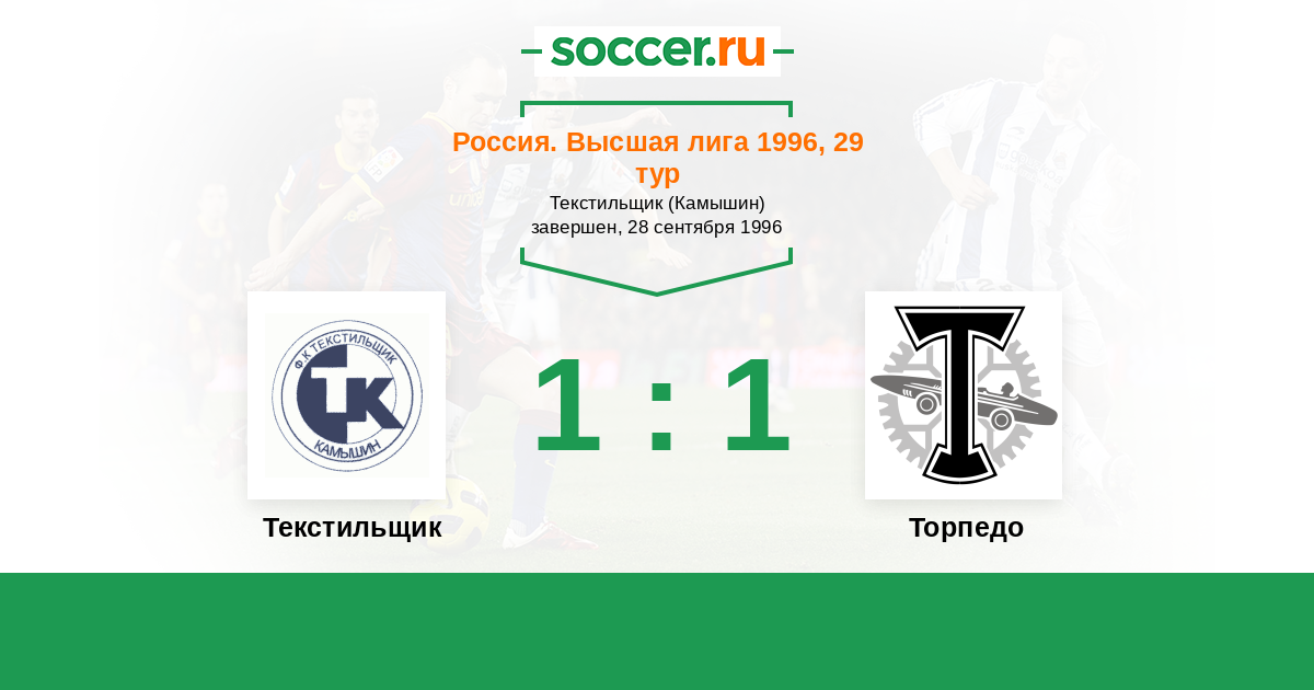 Текстильщик - Торпедо-Лужники: обзор матча 28 сентября 1996