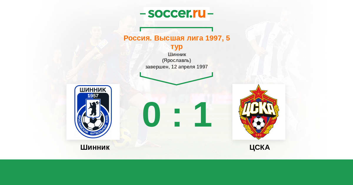 Шинник - ЦСКА: обзор матча 12 апреля 1997