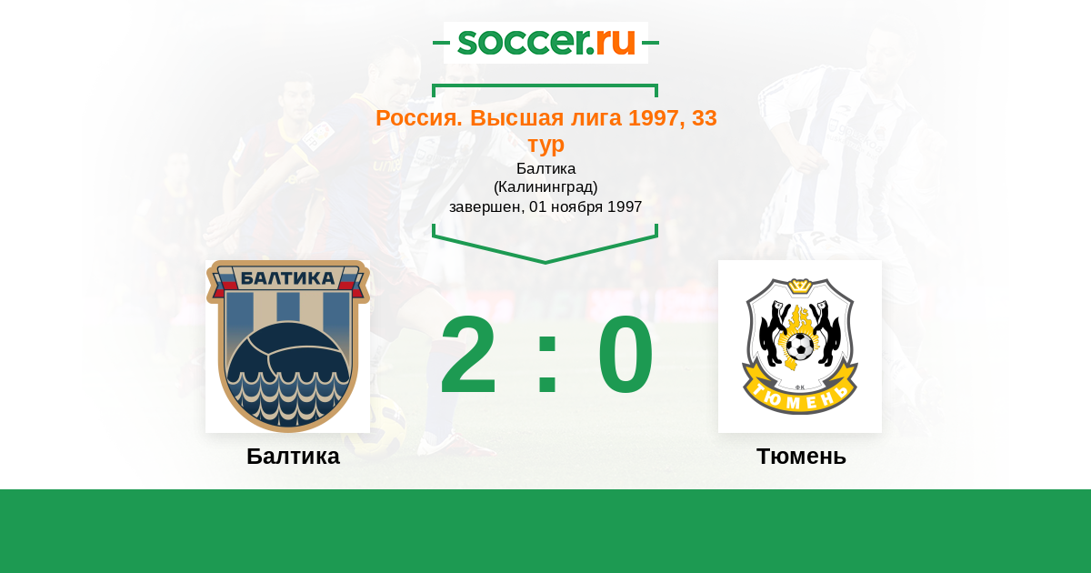 Балтика - Тюмень: обзор матча 1 ноября 1997