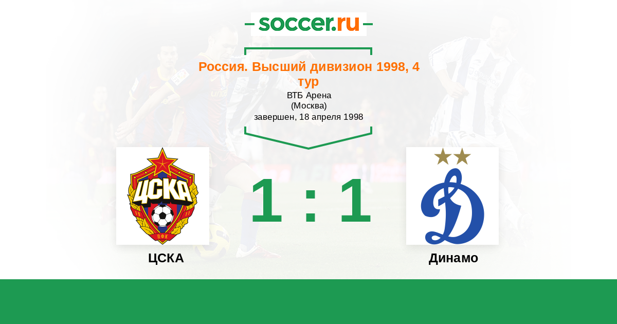 ЦСКА - Динамо: обзор матча 18 апреля 1998
