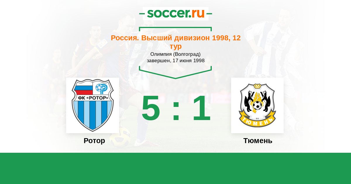 Ротор - Тюмень: обзор матча 17 июня 1998