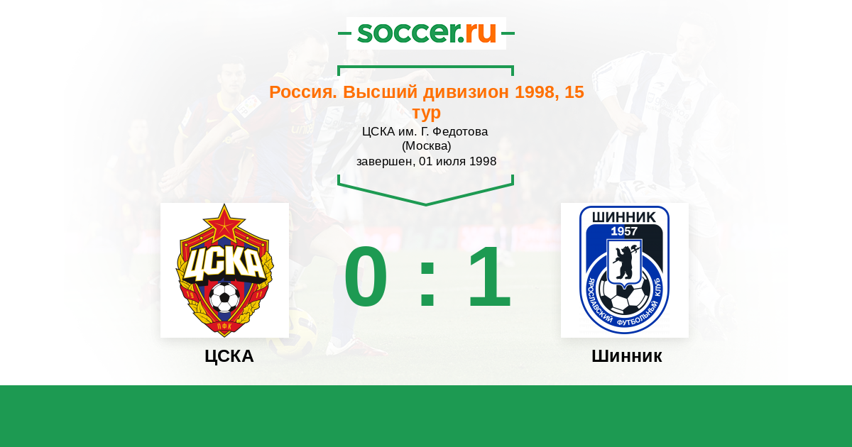 ЦСКА - Шинник: обзор матча 1 июля 1998