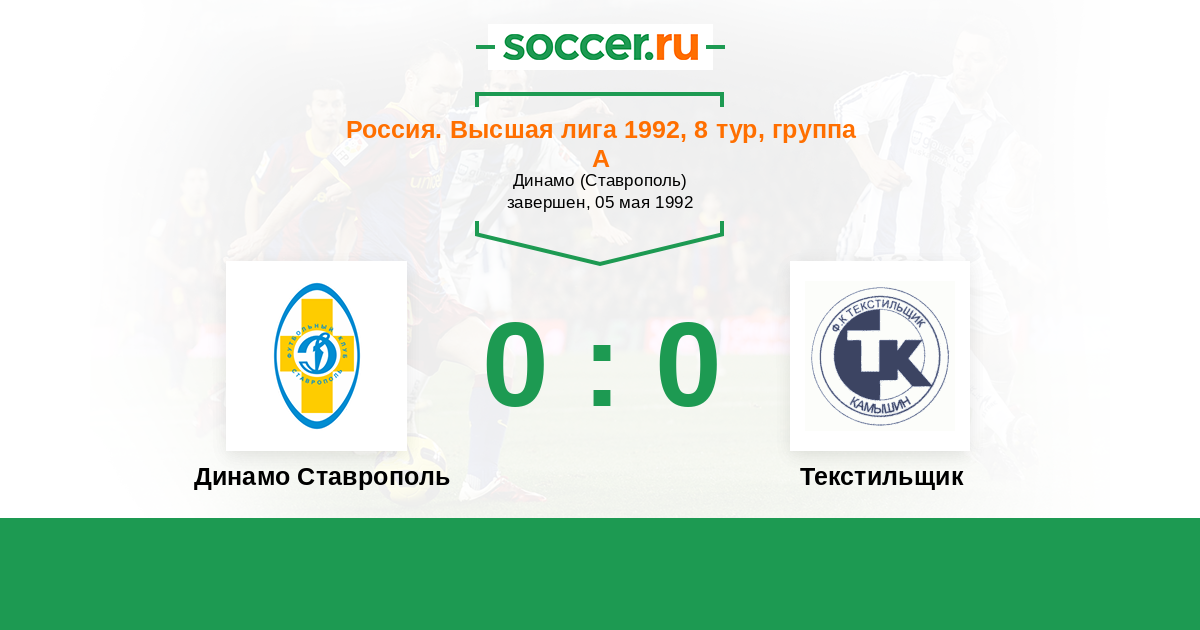 Динамо Ставрополь - Текстильщик : обзор матча 5 мая 1992