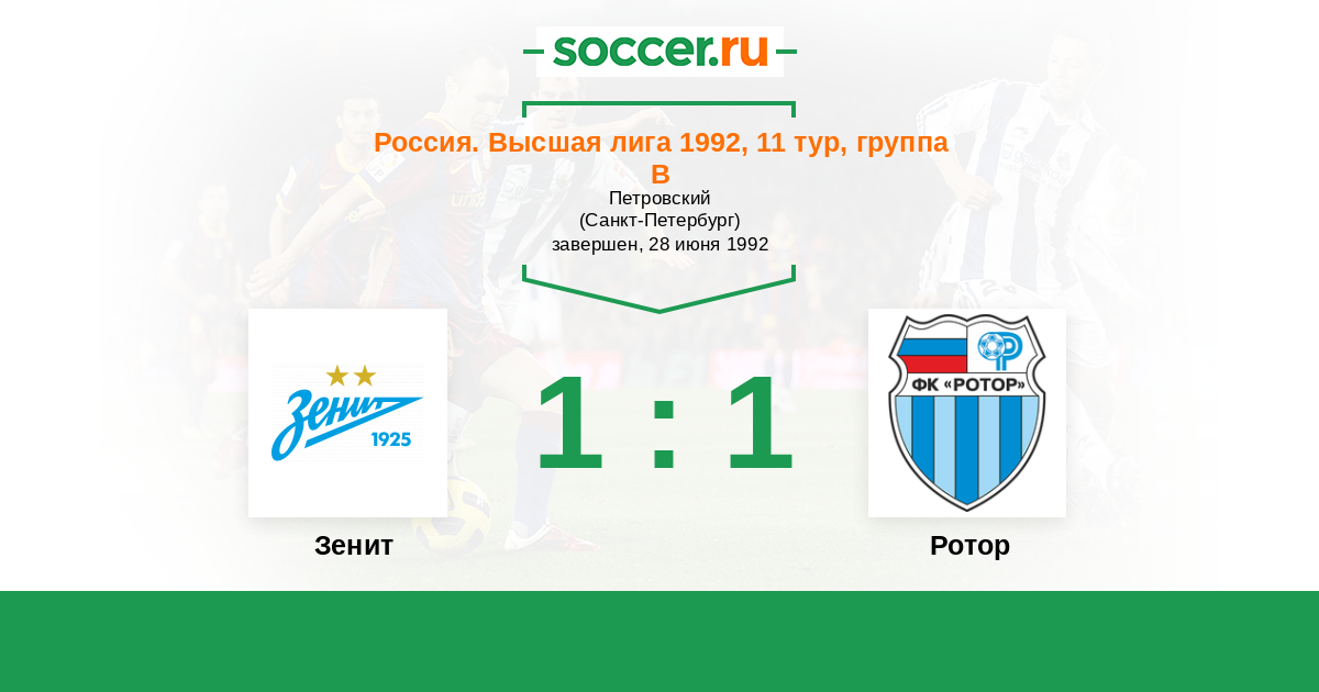 Зенит - Ротор: обзор матча 28 июня 1992